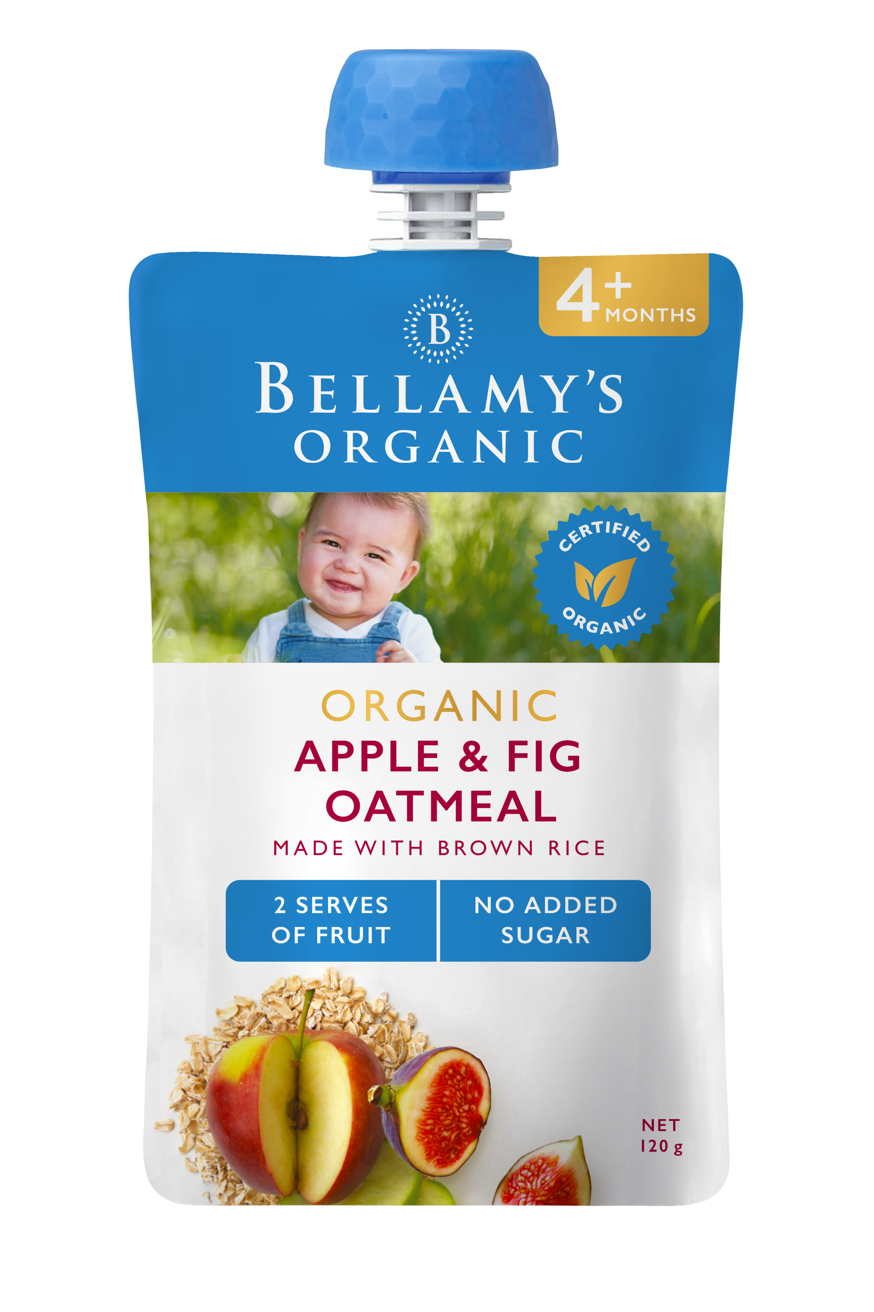 Our delicious Organic Apple and Fig Oatmeal is a convenient way to introduce new and exciting fruit tastes to your baby. Not just delicious, the added whole grains of oats and brown rice give sustained energy release and boost fibre compared to eating fruit alone. Can be enjoyed warm or cold.